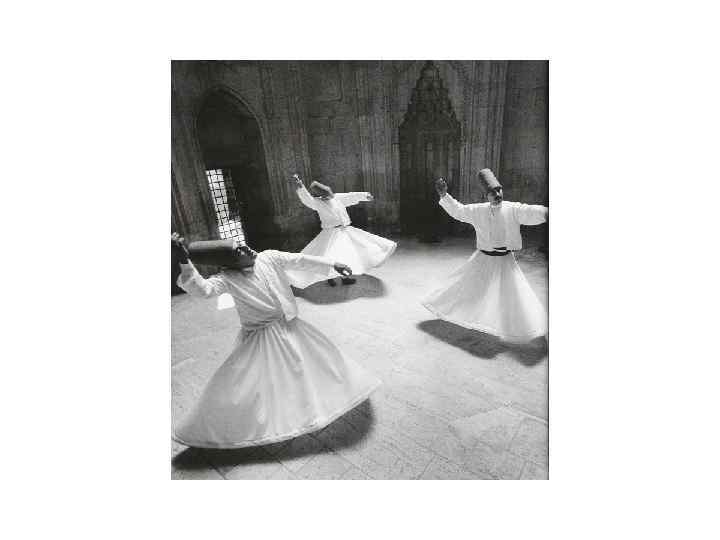 Суфизм VIII-IX вв • • • Суф= шерсть (грубая одежда отшельника) Аль Газали, аль Мисри, аль Араби Интуитивное постижение Бога = экстаз Круг – путь / тарикат (цепь посвящений, молитвенные формулы, танец) кружение/вертикаль Притчи – иносказание, непрямое выражение истины, слон/слепые истина: вино, красавица, хлеб, золото, песня Принцип универсальности - для любого человека, соц. слоя, идейного течения Цель – стать зеркалом, отражающим высшую реальность Дух. нищета, преданность, самоограничение Совершенный человек – жить в согласии с миром и никогда не раздражаться (обида = признание реальности мира) Самая мучительная аскеза – социальность, но уход в отшельничество – ущербность, застой, тк человек включён в цепь причинности