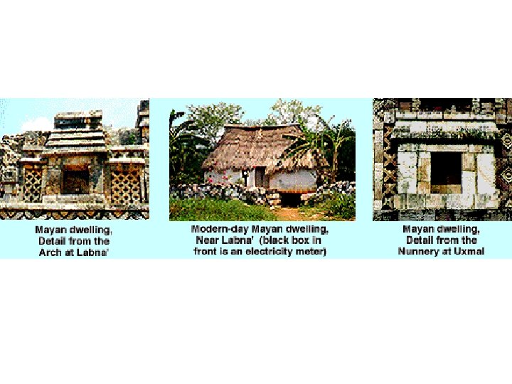 Mayan (2000 B. C. - 100 A. D. ). • The Maya are known for many things, such as, mathematics, food, and, especially, their architecture. Some of the Maya's architecture ranges from small huts, to large houses, to beautiful, elaborate temples.