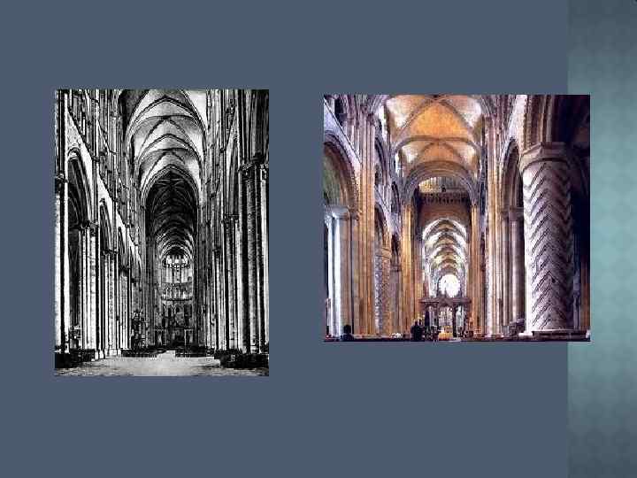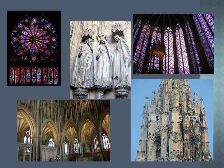Die wichtigsten Merkmale des gotischen Stils sind: die Spitzbögen die größeren Fenster die schlankeren und höheren Bauformen hohe Türme Glasmalerei reiche Ornamente die Spitzbögenстрельчатые арки