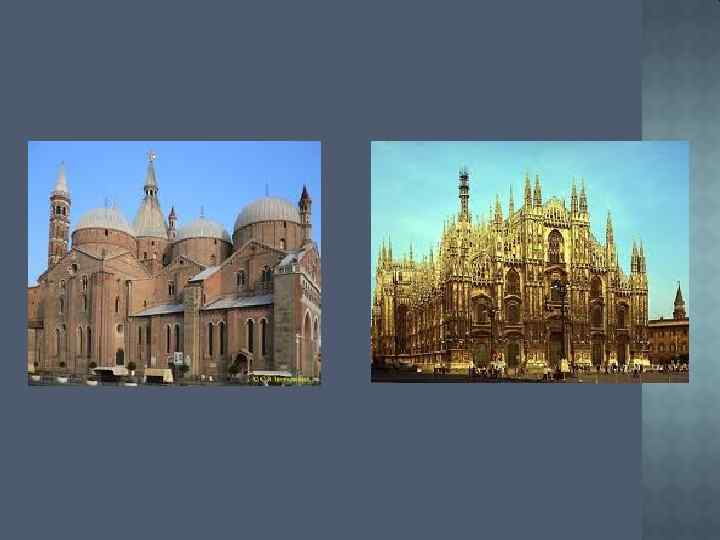 Im Kirchenbau herrscht der Typ von Basilika vor. Basilika bestand aus einem mittleren Hauptschiff und zwei niedrigeren Seitengängen (Seitenschiffe), welche durch längs laufende Säulenreihen voneinander getrennt waren. Diese Grundform wurde später weiterentwickelt und durch das Querschiff ergänzt und findet noch einen Anklang in der gotischen Kathedrale.