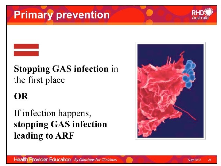 Primary Prevention of ARF/RHD • Prophylactic antibiotics for GAS • Treating GAS pharyngitis • Treating GAS pyoderma? • A GAS vaccine