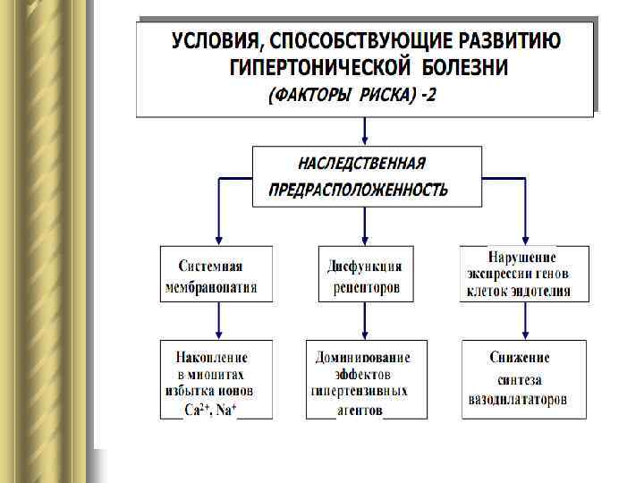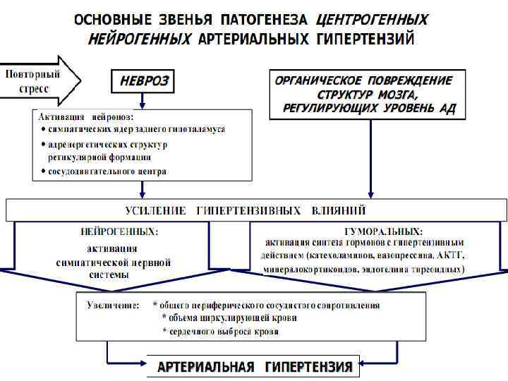Тесты итогового уровня знаний Вариант 1 2. Патогенез гипертонической болезни предположительно включает следующие звенья, кроме: а) стойкое повышение возбудимости и реактивности симпатических нервных центров заднего отдела гипоталамуса; б) снижение тормозного влияния коры головного мозга, оказываемого ею в норме на подкорковые прессорные центры; в) генетически обусловленное стойкое снижение натрий , хлор и водовыделительной функций почек г) генерализованный наследственный дефект мембранных ионных насосов: кальциевого и натрий калиевого; д) генетически обусловленная гипопродукция минералокортикоидов Вариант 2 2. Укажите заболевание, которое не сопровождаются повышением артериального давления: а) синдром Иценко Кушинга б) болезнь Иценко Кушинга в) гипотиреоз г) гипертиреоз д) гиперкортицизм е) феохромоцитома