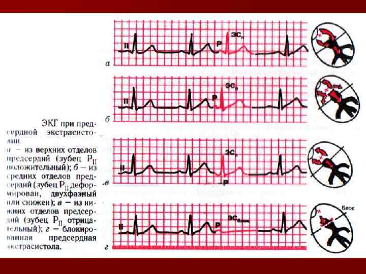 Нарушения возбудимости: Экстрасистолии • Предсердные • Атриовентрикулярные • Желудочковые Пароксизмальная тахикардия • Предсердные • Атриовентрикулярные • Желудочковые Трепетание и мерцание (фибриляция) предсердий Трепетание и мерцание (фибриляция) желудочков