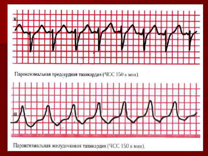 Пароксизмальная тахикардия — приступообразное и внезапное увеличение частоты импульсации правильного ритма из эктопического очага сердца. Частота эктопических импульсов колеблется обычно от 160 до 220 в минуту (при расположении гетеротопного очага в предсердии) или от 140 до 200 в минуту (при расположении в желудочках)