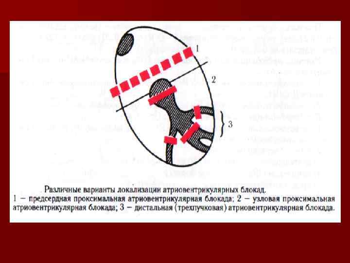 ПРОВОДИМОСТЬ - способность кардиомиоцитов проводить возбуждение. Проявляются чаще сердечными блокадами. Блокада сердца – патологическое замедление или полное прекращение проведение импульса возбуждения от САузла к нижележащим структурам Причины: n атеросклероз коронарных артерий, n инфаркт миокарда, n антиаритмические препараты, n интоксикация сердечными гликозидами, n гиперкалемия