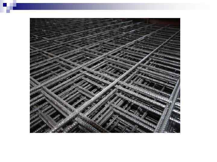 Основные виды арматурных изделий: - плоские арматурные решетки (сетки); - пространственные арматурные каркасы. n По условиям применения бывает: - напрягаемая арматура; - ненапрягаемая арматура. Напрягаемая арматура в предварительно напряженных ж/б конструкциях может быть только рабочей. n