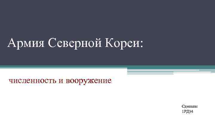 Армия Северной Кореи: численность и вооружение Сделала: 1 РД 34