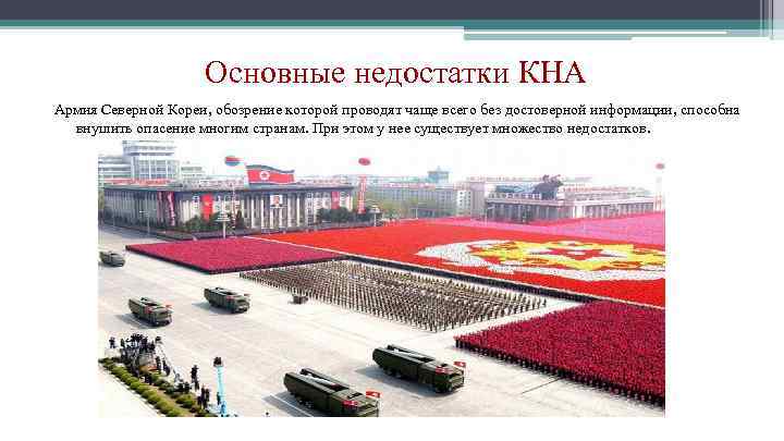 Основные недостатки КНА Армия Северной Кореи, обозрение которой проводят чаще всего без достоверной информации, способна внушить опасение многим странам. При этом у нее существует множество недостатков.