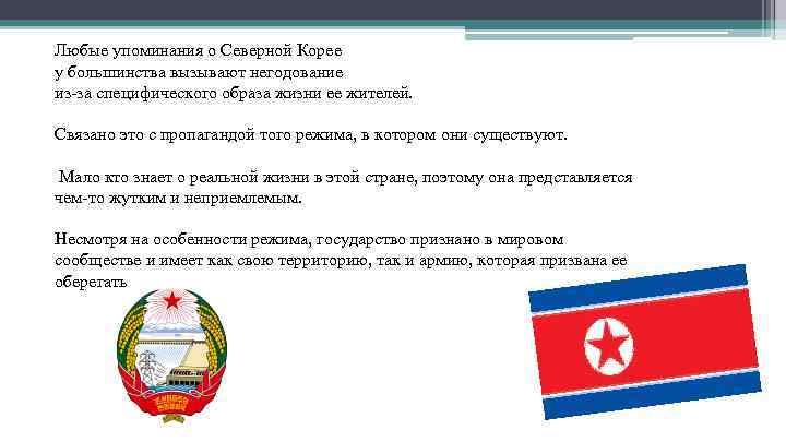 Любые упоминания о Северной Корее у большинства вызывают негодование из-за специфического образа жизни ее жителей. Связано это с пропагандой того режима, в котором они существуют. Мало кто знает о реальной жизни в этой стране, поэтому она представляется чем-то жутким и неприемлемым. Несмотря на особенности режима, государство признано в мировом сообществе и имеет как свою территорию, так и армию, которая призвана ее оберегать