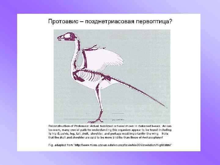 Китайские ученые 2003 г. обнаружили останки примитивного родственника птиц – динозавра, названного Microraptor gui. Все четыре его конечности покрыты перьями. Вероятно, это существо размером 77 сантиметров (от клюва до кончика хвоста), жившее от 120 до 110 миллионов лет назад, летало, планируя с дерева на дерево.