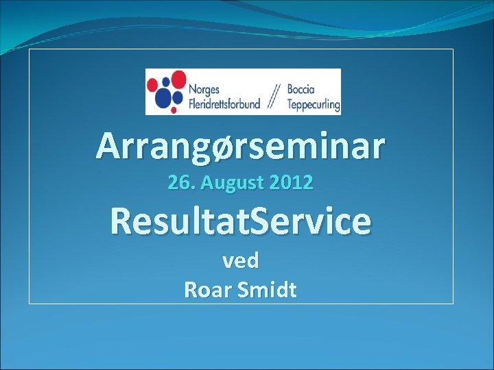 Arrangørseminar 26. August 2012 Resultat. Service ved Roar Smidt