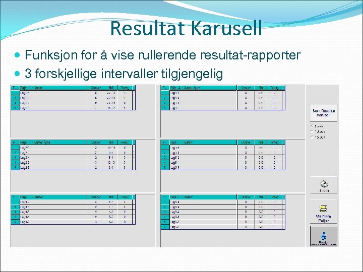 Resultat Karusell Funksjon for å vise rullerende resultat-rapporter 3 forskjellige intervaller tilgjengelig