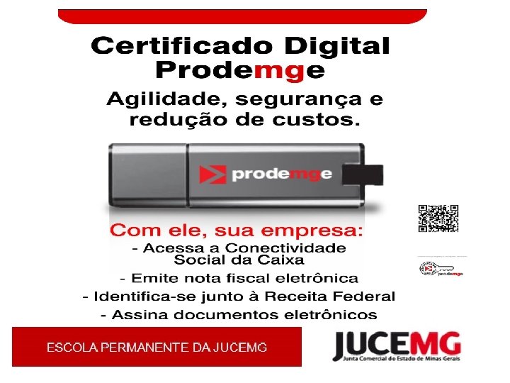 INOVAÇÕES 2011 / 2014 ü Implantação da emissão da Certificação Digital; ü Implantação do Via Única- desde dezembro 2013 ü Certidão apenas Web: simplificada, inteiro teor e específica; ü Implantação da Educação a Distância – Ea. D = São mais de 40 cursos disponíveis. Ex. : Registro Empresarial, Motivação e Trabalho, Power. Point, Consulta de Viabilidade, CNAE, Criatividade, outros. ü Endereço: www. jucemg. m. gov. br - Escola Permanente - EAD Jucemg