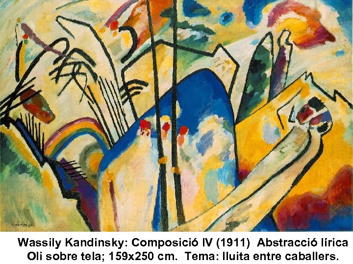 Wassily Kandinsky: Composició IV (1911) Abstracció lírica Oli sobre tela; 159 x 250 cm. Tema: lluita entre caballers.