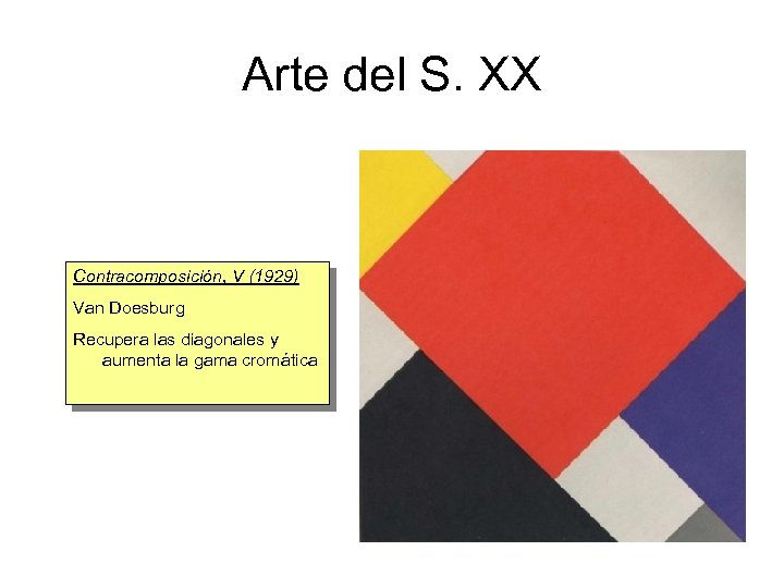 Arte del S. XX Contracomposición, V (1929) Van Doesburg Recupera las diagonales y aumenta la gama cromática
