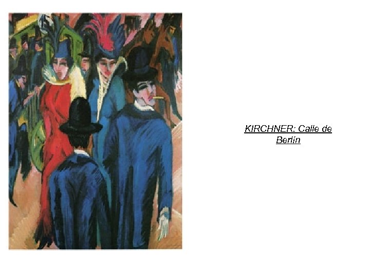 Arte del S. XX Expresionismo hasta 1914 – Die Brücke (El Puente) • Nace en Dresde en 1905 • Se caracteriza por : – La fuerza de las imágenes – Las formas angulosas – La violencia del color de influencia fauvista • Principal representante: Krichner Calle de Berlín