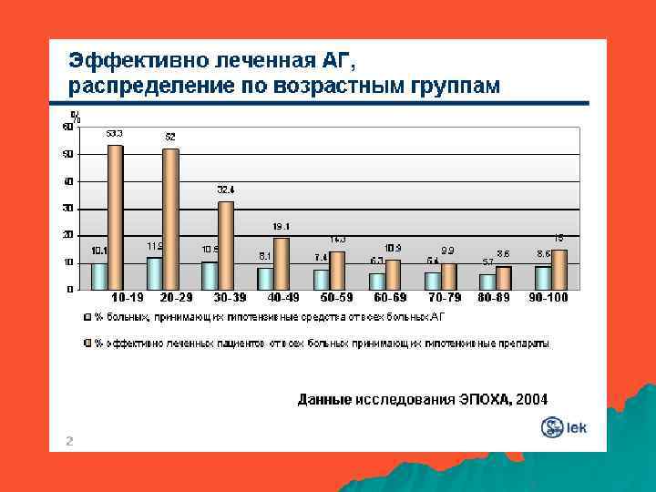 США (W. White, 2002) Интернац. HOT (1995 -1999) Россия (ЭПОХА) 2002 Диуретик 29% 33% 1, 5% β-блокаторы 18% 28% 10, 4% Ингибиторы АПФ 27% 38% Антагонисты кальция 22% 4, 9% Другие 4% 11% 45, 4%