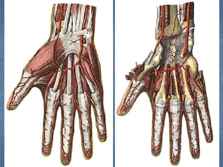 Артерии верхней конечности: n подмышечная (к мышцам пояса, n плечевая (к передней и задней n лучевая и локтевая (к n поверхностная ладонная дуга плечевому суставу), группам мышц, к локтевому суставу), поверхностному и глубокому слоям передней группы и к задней группе, к локтевому и лучезапястному суставам), (локтевая и ветвь лучевой, пальцевые артерии), n глубокая ладонная дуга (лучевая артерия и ветвь локтевой, пястные артерии).