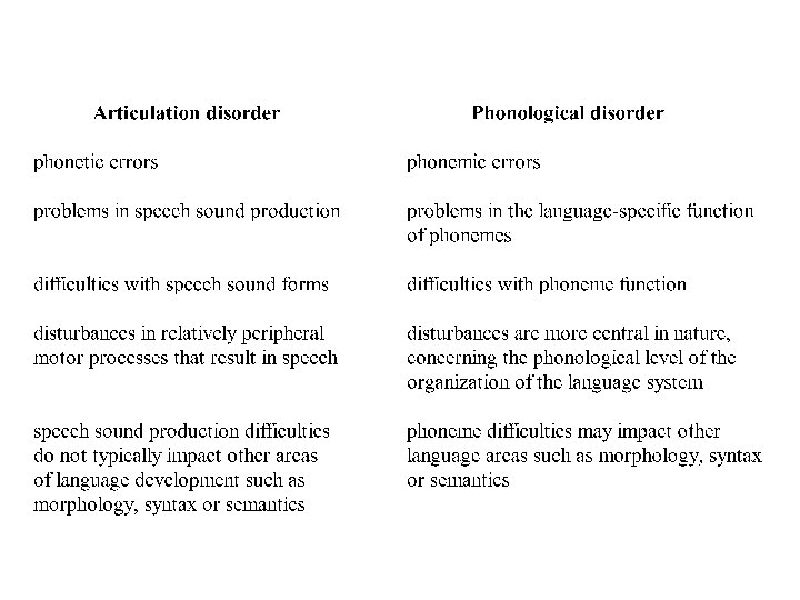 Use of phonological processes by phonologically impaired children • • • Persisting normal processes chronological mismatch systematic sound preferences unusual or idiosyncratic processes variable use of processes