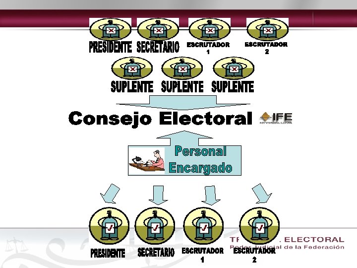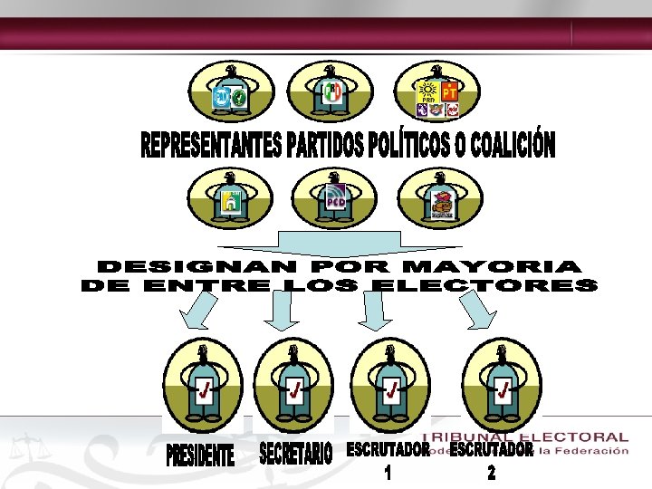 Mesas directivas de casilla Integración Estado de México: • Presidente • Secretario • 2 Escrutadores • 3 suplentes generales Elecciones Federales: • Presidente • Secretario • 2 Escrutadores • 3 suplentes generales Artículo 128 CEEM. • Artículo. 155 COFIPE