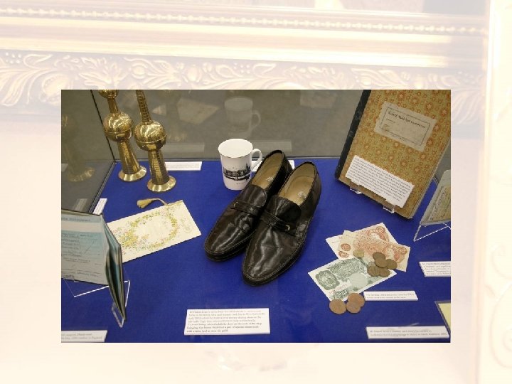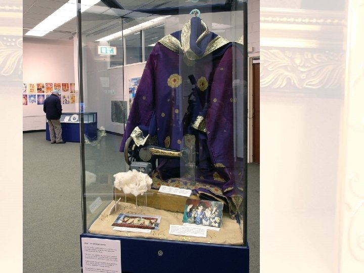 Key themes • • • Gold (gold spray, jewellery, cloth) Textiles (sewing machine, cotton, clothes) Travel (shoes, Pakistan, migrations) Family values (Koran, glass mosque) Toys (children’s including Action man) Growing up in Rotherham (photo boards and home background with family trees) • Weddings (case with wedding dress, textile case)