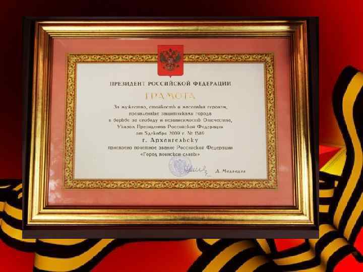 12 января 2010 года президент России Дмитрий Анатольевич Медведев вручил мэру города Архангельска грамоту