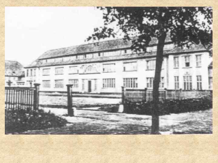 • • Архитектор, Фридрих Ларс скульптор. Станислав Кауэр. Строительство начато в 1910 году, окончено в 1919 г. , выезд в 1916 г. Основанная в Кенигсберге в 1841 году в здании Художественной школы по Кенигштрассе 57 Академия искусств не могла больше расширяться из-за большой тесноты. В обмен на старый участок администрация города предоставила академии строительную площадку в Ратсхофе. Вначале были сомнения в связи с большой удаленностью академии от центра города. Однако, вскоре были замечены и определенные преимущества чудесного открытого ландшафта, растянувшегося от улицы Росслинден (Бассейная) на восток и проходившего через ниже расположенный ручей до Дюрерштрассе (Лесопарковой). Чтобы привязать профессоров акдемии к Кенигсбергу предполагалось рядом с главным зданием и по Дюрерштрассе возвести отдельно стоящие дома с собственными мастерскими. Школа № 21