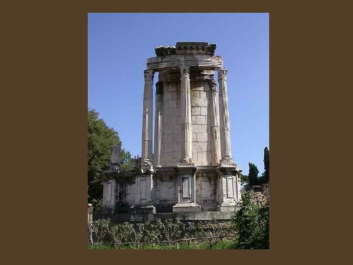Этапы развития римской архитектуры Республиканский период - I период (конец VI в. - сер. II в до н. э. ) этрусский характер построек, влияние местных традций Аппиевая дорога, первые акведуки, базилики. - II период (сер. II в до н. э. – 31 г. до н. э ) сильное влияние греческой архитектуры, появляются первые мраморные храмы, круглые храмы Храм Весты, храм Портуна, Табуларий, первый каменный театр на Марсовом поле
