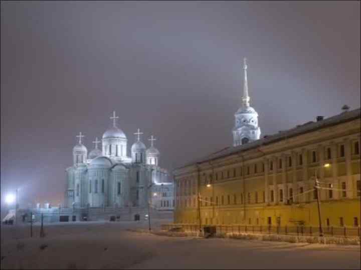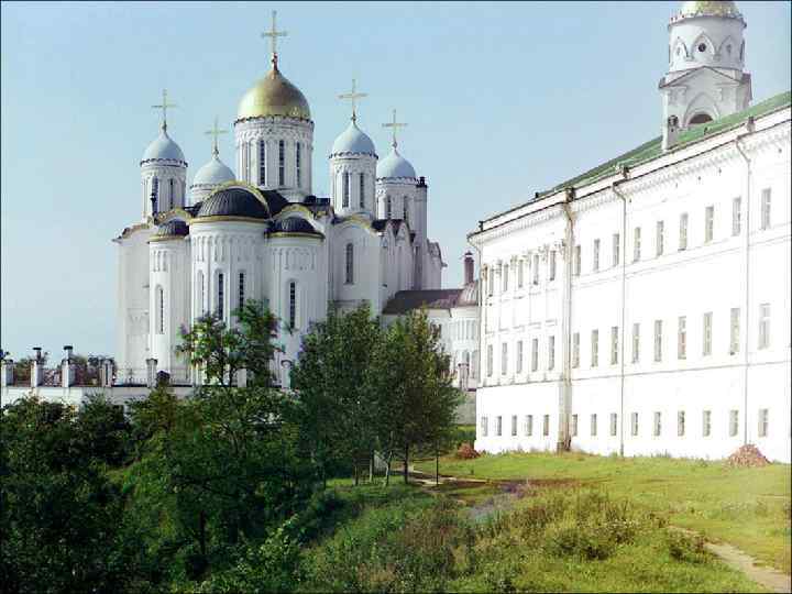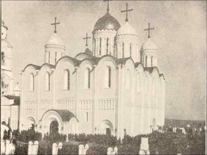 Храм в XIX-XX вв. В конце XIX века была проведена первая научная реставрация собора, храму был возвращён первоначальный облик. В 1882 -1884 гг. проводились "внутренние" работы, в ходе которых, в частности, были открыты фрески Рублева В 1886 -1891 гг. собор отреставрировали снаружи: были убраны контрфорсы, восстановлены растёсанные окна и позакомарное покрытие, луковичные главки были заменены более аутентичными шлемовидными. В XX веке собор также несколько раз реставрировался. Самая крупная и прололжительная реставрация была проведена в конце 70 -х - начале 80 -х: был очищен и покрыт специальным составом белый камень, позолочены купола. Внутри собора укрепили красочный слой фресок, отрегулировали температурно-влажностный режим.