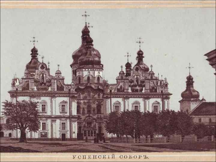 Заложен в 1073 году Постройку и украшение церкви связывают с греческими мастерами, пришедшими в Киев из Константинополя. Храм сильно пострадал от землетрясения в 1230 году, а в 1240 его разграбили монголы хана Батыя. Собор был отремонтирован в 1470 году, однако уже в 1482 вновь разграблен крымскими татарами хана Менгли. Гирея во время набега на Киев. Впоследствии восстановлен, служил усыпальницей литовской и русской шляхты. Разрушен при сильном пожаре в 1718 году. Восстановлен в 1729 году, расширен и украшен в стиле украинского барокко. В. В. Верещагин. «Великая церковь Киево-Печерской лавры» (1905)