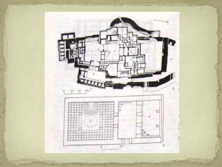 Архитектурные особенности: Поселения устраивали на высоких холмах, окружая их кольцом мощных крепостных стен. Дворцовые постройки Микен и других городов союза имели свободную планировку с отдельными осевыми композициями зданий, составлявших единый церемониальный комплекс. При сооружении крепостей обычно применялась кладка из больших необработанных камней, называемая «циклопической» . Стены дворцовых, построек были сложены из сырцового кирпича с деревянными прокладками, покрыты штукатуркой и иногда расписаны. «акрополь» — «верхний город» - возвышенная и укреплённая часть древнегреческого города, крепость (убежище на случай войны)