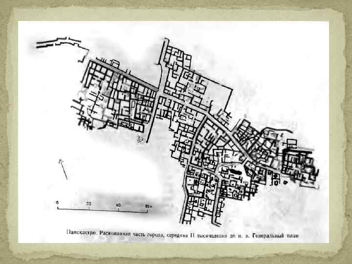 Архитектура острова Крит. Архитектурные особенности городов: Без крепостных стен. Расположение в узких долинах, на холмах и склонах гор, имеют нерегулярную планировку, стихийную застройку, террасные дома. центр города образован дворцом правителя. Планировка поселений складывалась стихийно. Улицы мостились и часто имели ступени. Главные улицы значительно шире остальных. Обычно дома вплотную примыкали друг к другу, образуя в пределах квартала общие стены. Только богатые дома иногда стояли изолированно. Крупнейшие города Крит, Кносс, Фест, Маллиа и другие