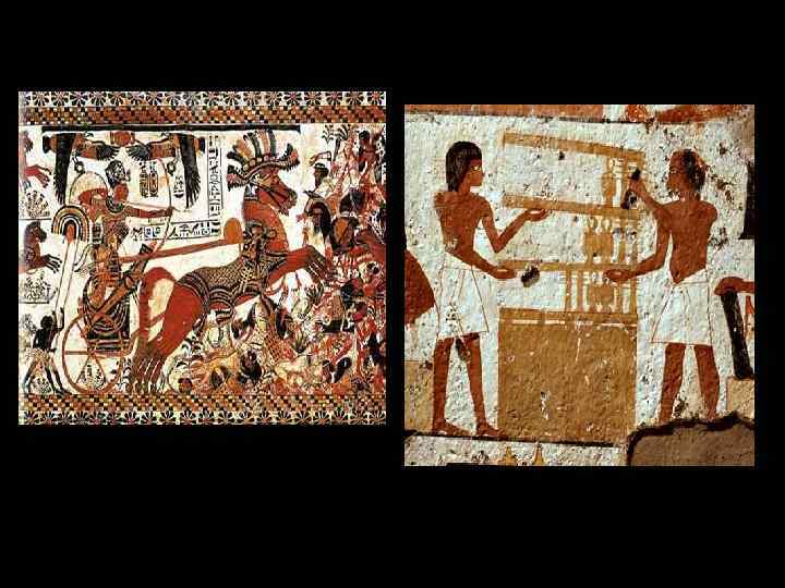 Особенности фресковой живописи 1. 2. 3. Особый стиль изображения: лицо в профиль, торс в фас, ноги в профиль Цветовая гамма: желтый, коричневый, зеленый, голубой, белый Тематика: сцены загробной жизни, эпизоды сражений, сцены повседневной жизни