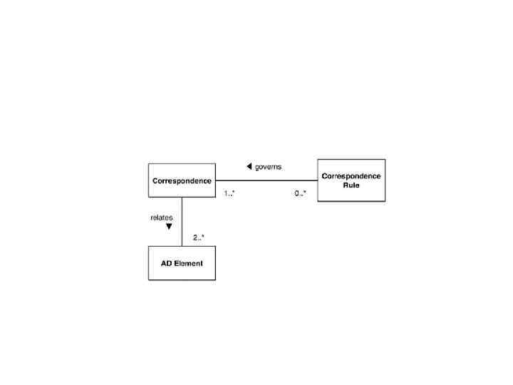 Соответствия. • В качестве элементов архитектурного описания могут выступать экземпляры таких классов как заинтересованные стороны, интересы, точки зрения, виды, типы моделей, кроме того, могут быть введены и другие элементы. Соответствия описываются с помощью правил соответствия (correspondence rules).