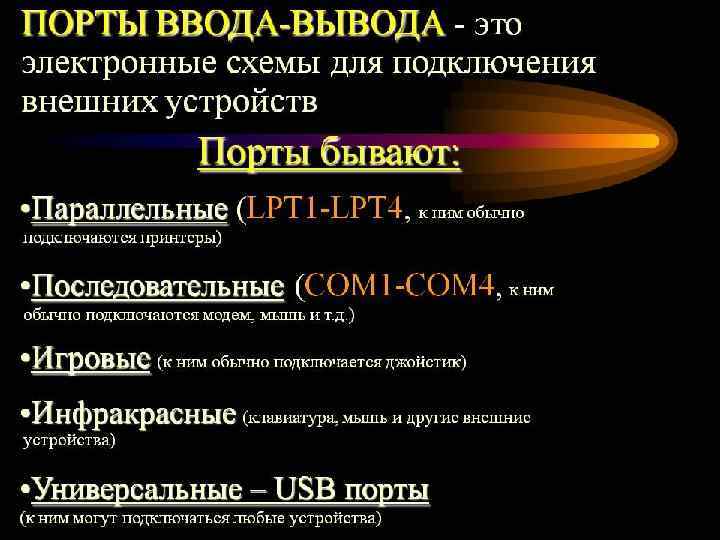 Шины – используются для связи между отдельными функциональными узлами компьютера. Шины данных - для передачи данных Шины адреса – для передачи адресов Шины управления - для передачи управляющих сигналов
