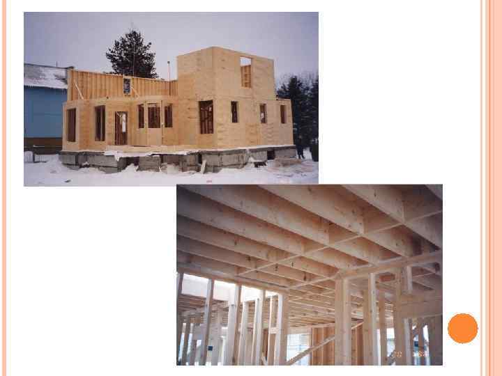ДЕРЕВЯННЫЙ КАРКАС Дома с деревянным каркасом прогрессивнее брусчатых, т. к. требуют меньшего расхода древесины. Несущей конструкцией их служит деревянный каркас, состоящий из стоек, сечением 50*80 мм, горизонтальных элементов такого же сечения. Стойки устанавливают с модульным шагом 600 мм в осях и прибивают гвоздями к нижней и верхней обвязкам.