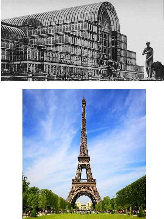 Архітектура першої половини XIX століття пережила свій розквіт у межах класицизму. У цей час у Парижі, Лондоні, Берліні, Санкт-Петербурзі з'являються численні архітектурні ансамблі, які додали головним європейським столицям характерного вигляду. Протягом 1853– 1870 рр. була проведена перебудова Парижа під керівництвом префекта Ж. Е. Османа та архітектора Ж. Алфана. Архітектори другої половини ХІХ ст. часто поєднували форми різноманітних стилів. Такий спосіб побудови архітектурних споруд дістав назву «еклектизм» . Прикладом еклектизму є зведена в 1861– 1874 рр. Шарлем Граньє будівля Опери в Парижі. В 1851 р. за проектом Д. Пакстона до першої Всесвітньої промислової виставки в Лондоні збудовано Кришталевий палац, у вікторіанському стилі. В 1936 році Кришталевий палац був повністю знищений пожежею. У 1889 р. французький інженер Гюстав Ейфель створив 300 -метрову металеву вежу, яка дістала назву Ейфелевої вежі. Ейфелева вежа являється яскравим прикладом модернізму в архітектурі. Була зведена як тимчасова споруда в ознаменування сторіччя з дня початку Французької революції та до відкриття паризької Всесвітньої виставки 1889 року, що розташовувалась в палаці Трокадеро з 6 травня до 31 жовтня та символізувала багатство і незалежність Франції. Вежу збирались розібрати через деякий час після завершення виставки, але завдяки уже встановленим там радіоантенам, це рішення було скасоване. 28 жовтня 1886 р. в нью-йоркській гавані на острові Бедлов Айленд було встановлено статую Свободи. Її скульптором був Фредерік Бартольді (1834– 1904). національний пам'ятник США, символ свободи, демократії та справедливості. Це одна з найзнаменитіших скульптур в США та у світі, часто звана «символом Нью-Йорка і США» , «символом свободи і демократії» , «Леді Свобода» . Це подарунок французьких громадян до сторіччя американської революції. У короні статуї розташовано 25 вікон, які символізують земні коштовні камені і небесні промені, що освітлюють світ. В Німеччині довго дотримувалися форм холодного класицизму. Архітектура Росії 18 - першої третини 19 ст. ділиться на два основних етапи. Перший етап - перша половина та середина 18 ст. - Характеризується становленням і розквітом в середині століття архітектури російського бароко. Другий етап - остання третина 18 і перша третина 19 ст. - Час розвитку класицизму. Що ж до романтизму, то він не створив власної школи архітектури.