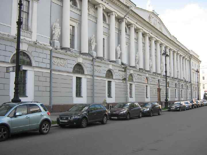 1806 -11. Горный институт n В 1806 году А. Н. Воронихин получил заказ на перестройку зданий Горного кадетского корпуса (с 1833 года Горный институт), размещавшихся на юго-западной оконечности Васильевского острова. n Шесть старых двухэтажных построек, которые он занимал, располагались параллельно набережной Невы, прихотливо изгибаясь и образуя ломаную линию разнохарактерных фасадов. n Сохранив существующее строение, Воронихин объединил их общим фасадом - строгим, лишенным декоративных деталей: гладь стены прорезают прямоугольники окон.