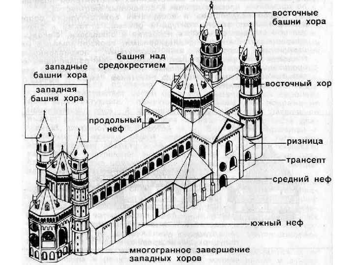 Внутреннее расчленение базиликального храма (монастырская церковь в аббатстве Мария Лаах)
