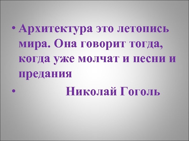 • Архитектура это летопись мира. Она говорит тогда, когда уже молчат и песни и предания • Николай Гоголь