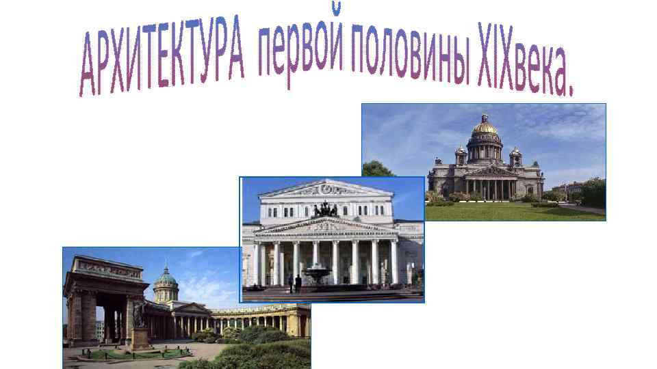 Архитектура ампира Петербургский Архитектура проспектов И площадей К. И. Росси (1775 -1849) А. Н. Захаров (1761 -1811) А. Н. Воронихин (1759 -1814) Московский Архитектура отдельных зданий Д. И. Жилярди (1785 -1845) О. И. Бове (1784 -1834) А. Г. Григорьев (1782 -1868)