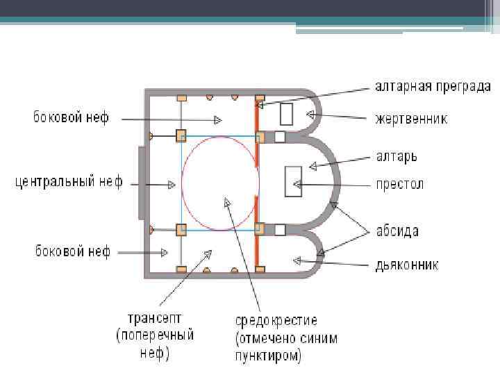 Нефы части храма, поделе нные рядами колонн (3 -5)