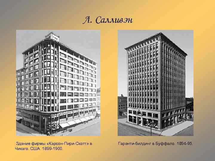 Л. Салливэн Здание фирмы «Карсон-Пири-Скотт» в Чикаго. США. 1899 -1900. Гаранти-билдинг в Буффало. 1894 -95.