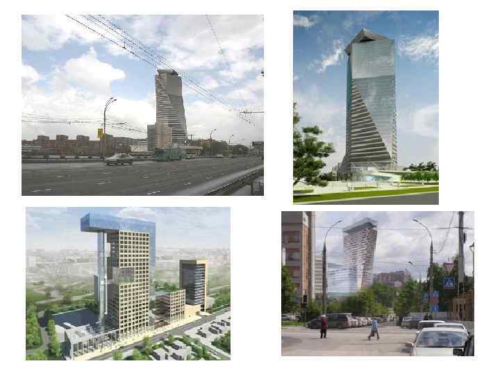 город будущего Коммуникополис Город будущего Коммуникополис Дома (группы башен) в этом городе в городе имеют 4 основных особенности: 1) Форма их построена по правилам комбинаторики – точь в точь как и человеческие отношениях 2) В своей средине каждая группа башен имеет сплетение сродни узлу 3) Каждое из зданий несет в своем узле функцию общения, культурного обогащения 4) Для поддержания основной цели Коммуникополиса, используются сенсорные технологии, которые выводят на фасад зданий цветом эмоции скоплений людей, завлекая случайных прохожих в круг общения.