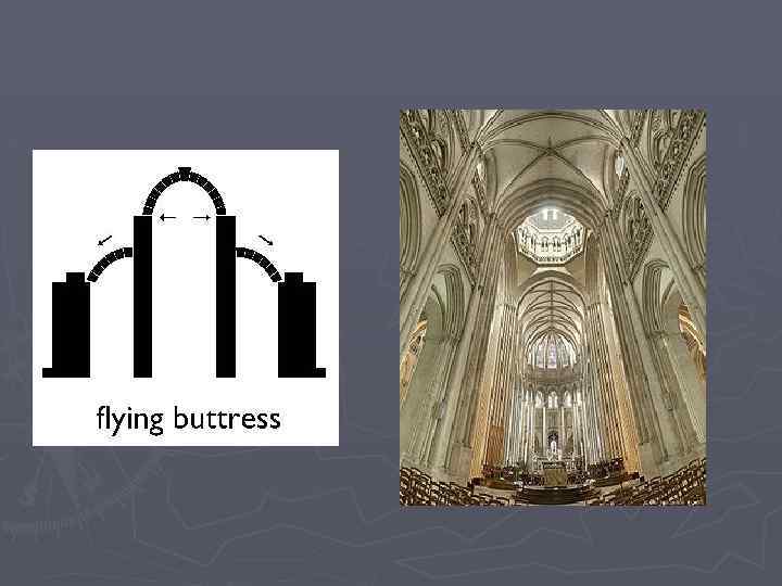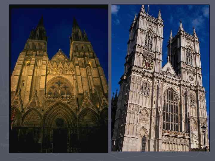 Готика ► Готическое искусство – исскуство цветущих торговых и ремесленных городов коммун добившихся известности и самостоятельности внутри феодального мира. Готический стиль в Западной Европе достиг вершин (высокая готика) в 13 веке. Угасание приходит на 14 -15 века (пламенеющая готика)