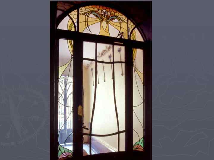В рисунках витражей в качестве орнаментальных мотивов использовались цветы - ирисы, маки, различные травы, а также лилии и другие водные растения с длинными тянущимися стеблями. Использовался и геометрический орнамент, в том числе мотив меандра в специфической, характерной для модерна прорисовке.