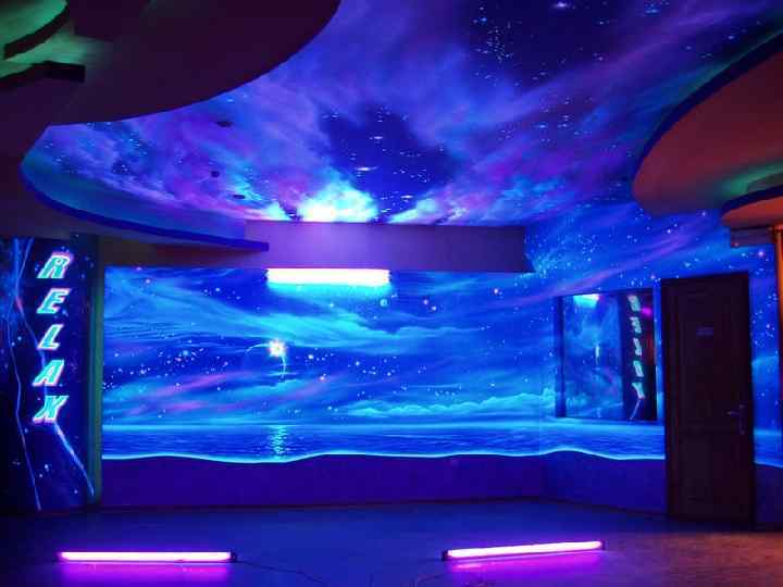 Флуоресцентная краска используется уже длительное время в дизайне интерьеров и экстерьеров, оформлении ночных клубов, автотюнинге, боди арте и т. д.