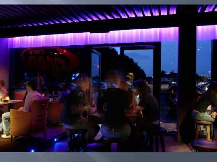 Подсветка кафе с помошью мультимодульной системы на светодиодах меняющей цвета. Производитель ориентированная на дизайнеров бельгийская компания TAL