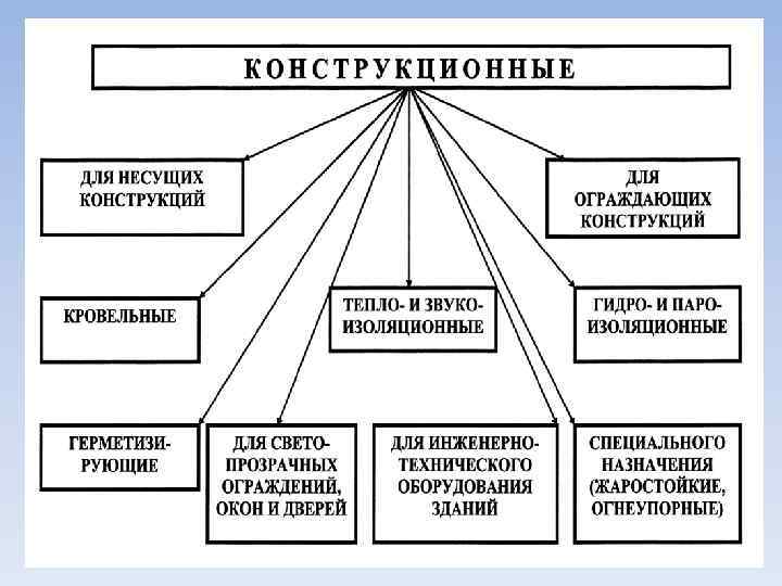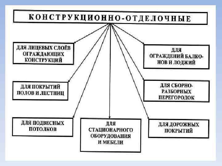 • По области применения: • Конструкционные; • Конструкционно отделочные; • Отделочные.