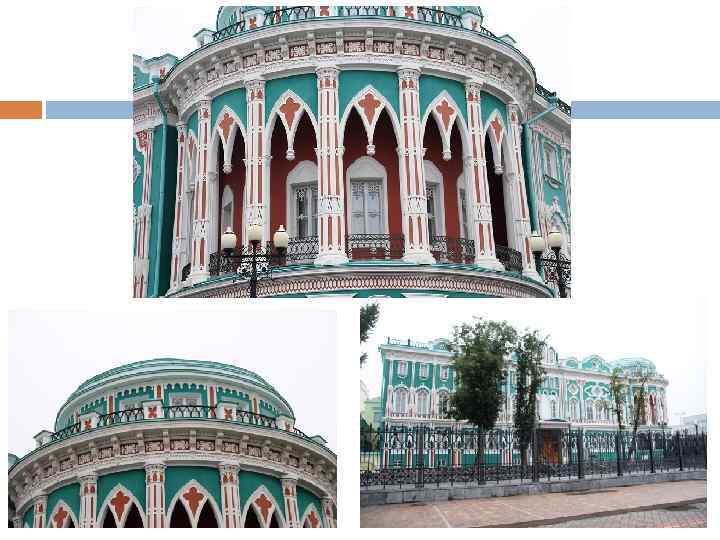 Усадьба Расторгуевых-Харитоновых Главная достопримечательность Екатеринбурга, безусловно, советская архитектура. Однако и в предшествующие периоды в городе было построено много интересных зданий. Поэтому сегодня мы посмотрим некоторые памятники эпохи классицизма. Главный памятник города, построенный в классическом стиле – усадьба Расторгуевых. Харитоновых. Строилась она тридцать лет, с 1794 по 1824 год. Автором первоначального проекта был архитектор Т. Адамини, но нынешний вид усадьба приобрела после перестройки архитектором М. П. Малаховым. Строилась усадьба в несколько заходов, при этом новые корпуса строились рядом со старыми, а потому усадьба производит необычное для классицизма впечатление не столько единого здания, сколько городского квартала, строившегося в одно время, но для разных владельцев.